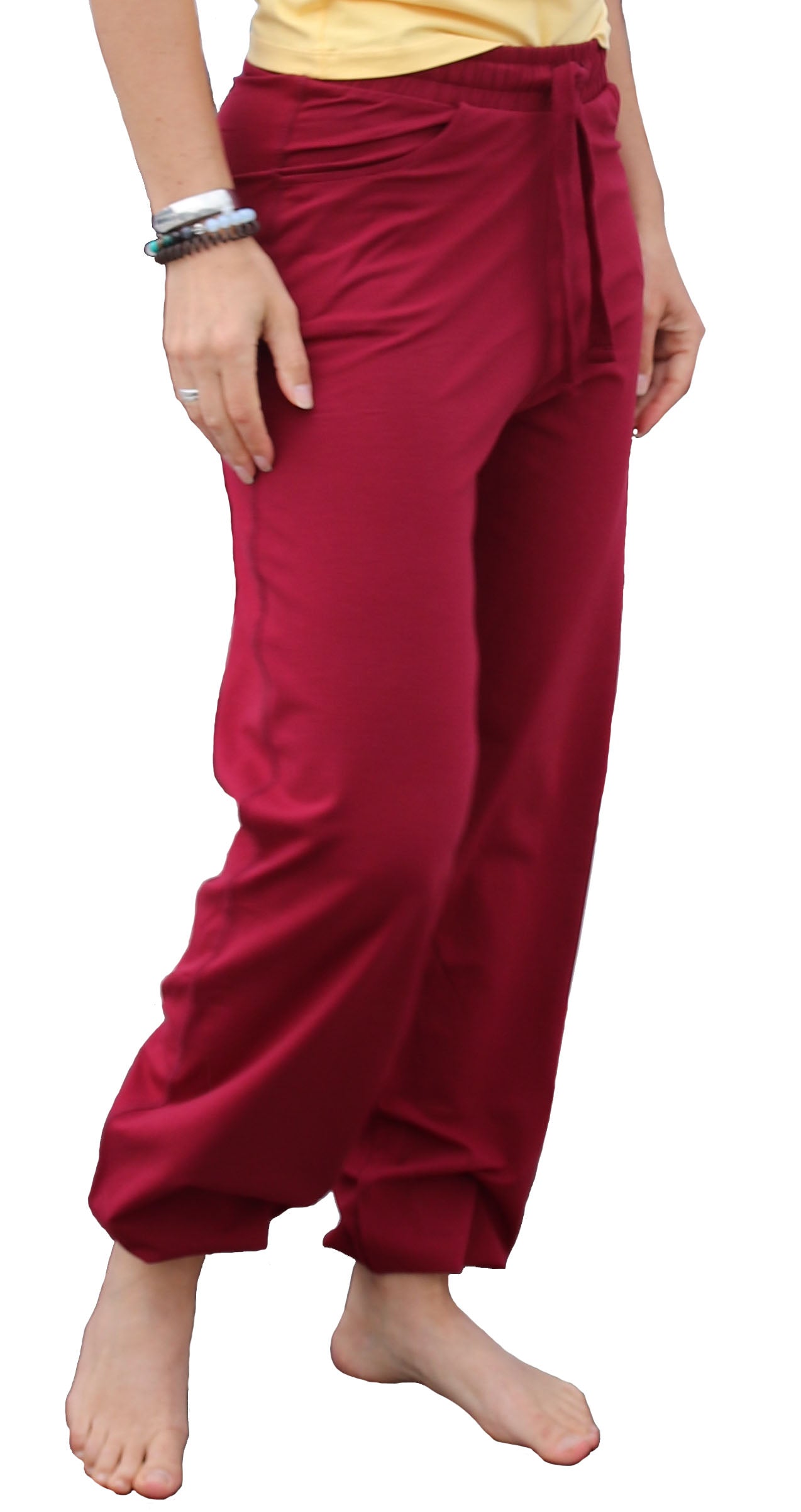 Elastic, dimensionally stable sports pants for Pilates, Yoga, meditation, martial arts, wellness, and leasure